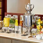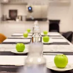 There are 100 rooms featuring an iron and climate control, as well as modern amenities like free wireless internet and a flat-screen TV with satellite channels. They are outfitted with comfortable decor. The private bathrooms feature dressing gowns and a shower cap.